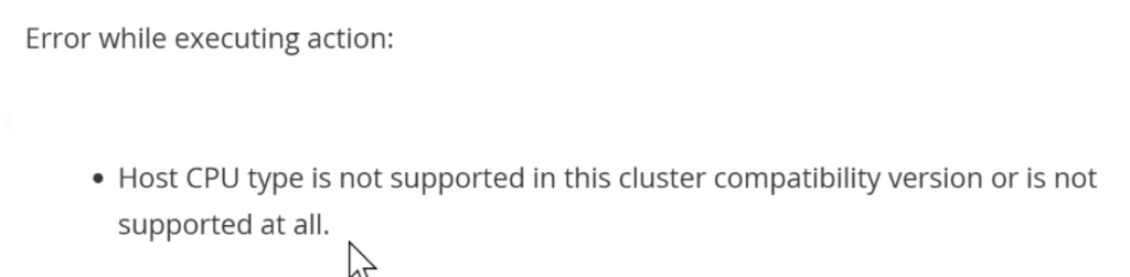 OLVM: Host CPU type is not supported in this cluster compatibility version or is not supported at all